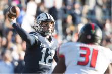 Sept. 5, 2015 • Three months after returning from his mission, replaces injured QB Taysom Hill and throws a Hail Mary TD pass to give BYU a 33-28 win over Nebraska, as team finishes 9-4.