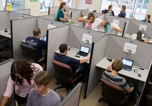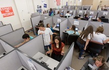 Orem • In a sparsely decorated office next to Utah Valley University student housing, a call center has sprung up where devoted Mitt Romney supporters pound the phones, calling battleground states to drum up support for their candidate.
