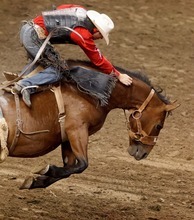 Brian Bain competes in the Bareback Riding competition at the Days of '47 Rodeo at the Maverik Center in West Valley City, Utah on Tuesday, July 24, 2012.