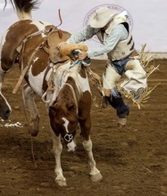 Kip Lish competes in the Bareback Riding competition at the Days of '47 Rodeo at the Maveri