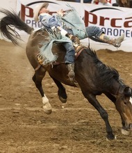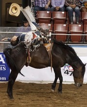 Brian Bain competes in the Bareback Riding competition at the Days of '47 Rodeo at the Mave
