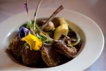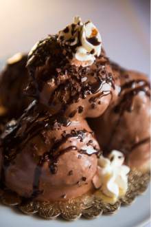 We also sampled ravioli with mushrooms ($19.95), a rich plate of pillowy pasta stuffed with prosciutto and wild mushrooms, and garnished with more mushrooms. It was blanketed in a velvety cream sauce spiked with truffle oil. (I don't even want to know the calorie count.) A vibrant orchid blossom saved it visually from brownout, but I would have eaten all of it even without the flower.