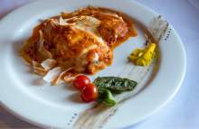 Antica Sicilia is the younger sibling of Sicilia Mia, in Holladay, which was recently expanded. That restaurant has a loyal following and no doubt created some interest in the new spot, which has had many occupants, most recently a diner called the Rustic Grill. The look is still rustic, featuring dark wood ceiling beams and wall posts. But white-over-black tablecloths add a bit of elegance, and there's plenty of natural light from windows on the north and west. Up front, there's a cold case filled with the many desserts that are made in house, from cookies to tiramisu.