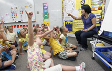 "By January, they'll be talking and writing," she said, pointing to Chang's first-graders, who were on day five of learning Chinese Wednesday. "It's a huge advantage for our community."