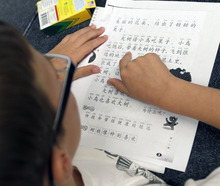 Third-graders in Yufang Huang's class were spouting new vocabulary words and reading aloud from worksheets and books written exclusively in Chinese.