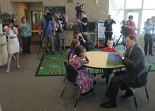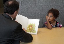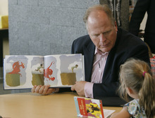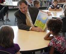 "It's fun to have people read to you," the second-grader said after listening to the state's highest elected official read aloud a picture book about a late-blooming tiger.