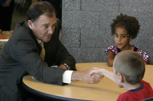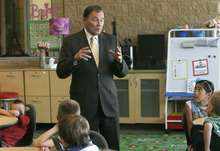 Gov. Gary Herbert joined business leaders at North Salt Lake's Foxboro Elementary for a news conference on Tuesday to highlight a new project aimed at putting 20,200 volunteers into Utah classrooms by the year 2020.