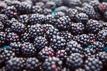 Blackberries • Although blackberries lend themselves naturally to crisps, fruit tarts, pies, cakes, smoothies, sorbet, and jams, they can also add flavor and contrast to savory dishes. Caramelized onions and fresh blackberries can enhance the flavor of a pork loin, the firm, sweet-tart berries playing well with the briny undertones and delicate texture of pork. Roast chicken sparkles when you use a blackberry rub and enhance the sweetly acidic flavor of the berries with lime, sage, thyme and rosemary. Using a sprinkling of blackberries as a finish to seafood, chicken, pork or lamb dishes provides a spot of color and a deliciously unexpected contrast in flavor. You can make tangy blackberry vinegar for use in vinaigrettes or marinades, create a syrup base for spritzers and other summer coolers, or fashion a subtly sweet, piquant barbecue sauce to use in grilling chicken, salmon or shrimp. A chilled savory soup of blackberries, cucumbers, cilantro, mint, and thyme is perfect for a hot day.