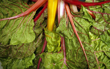 Chard • While it looks pretty and is good for you, what exactly can you do with chard? The young, tender leaves can be combined with fruit and blended into breakfast smoothies, used raw in salads, or cooked into various entrees and sides, adding lemony flavor and interesting texture to many summer meals. Chard can be substituted in any recipe that calls for spinach, such as quiche, lasagna, omelets, gratins and soups. Its leaves and stems tend to hold up better to longer cooking times, minimizing the soggy texture that can plague spinach-laden recipes. As a side dish, chard can be sautéed with any combination of garlic butter, onions, lemon juice and parmesan cheese, or with toasted sesame oil, rice vinegar and soy sauce for Asian flair. In a stir-fry, served over rice or noodles, it can complement a host of other meats and vegetables. And for an unusual appetizer, you can lightly steam the leaves and stuff them with rice, raisins, walnuts, onions and herbs.