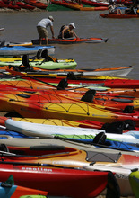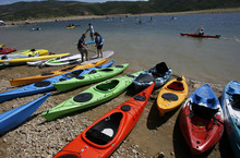 The Open Air Demo Day takes to the water kicking off the Outdoor Retailer Summer Market at Jordanelle State Park on Wednesday, August 1, 2012. More than 150 outdoor brands and many more retailers are at the reservoir to show off and experience first-hand the new gear coming out for the summer of 2013. More than 27,000 are expected to attend the twice a year convention held at the Salt Palace Convention Center which runs Aug. 2-5.
