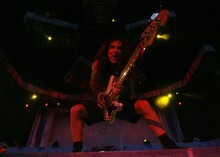 Fans played air guitars in the aisles and jumped to every beat as band founder Steve Harris set the tone with some nasty bass licks, drummer Nicko McBrain made good use of every drum in his huge set and guitarists Adrian Smith, Dave Murray and Janick Gers took solo turns. It was a night to remember.