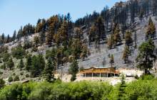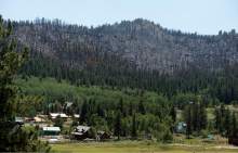 The blaze ended up burning within about 100 yards of Burdsall's cabin, which the Las Vegas resident bought in October. The roof and back deck is still speckled with the red patches of fire retardant dropped by air tankers two weeks ago.