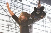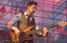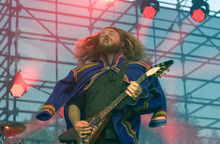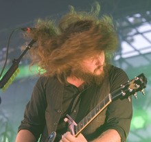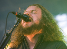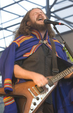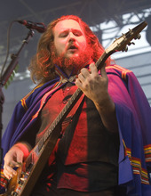 James' bassist, Isaac Russell who will perform tonight at Provo's monthly Rooftop Concert Series was rocking his head back and forth as he watched My Morning Jacket "They're kick-a___, man."