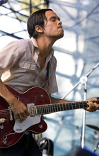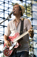 After James and his band finished a quick sound check and worked as their own roadies, James' family brought some loose-fitting jeans that didn't chafe his wound. A few minutes before 7 p.m., James and his band started the show, playing eight songs in a brisk 30 minutes. Just like it had done in sound check, James' hat flew off during the first song because of his energetic head thrusts. With a dynamic intensity that bodes well for listeners of his forthcoming album, "From the Top of Willamette Mountain," James with his dark bangs curling over his right eye as he sang played with glee and his band showed a tightness that had been earned over daily morning rehearsals for the past week. (Again, James is an early riser.) James' clear tenor doesn't exhibit a wide range, but there is a rasp that adds humanity and honesty into his probing, foot-stomping songs, whether he led with an acoustic or electric guitar.