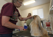 Tom and Marsha Worlton unleashed their 10 prize-winning Lhasa Apso dogs first thing when they returned home. "This was our number one priority getting these animals out," Tom said as his pets barked with excitement after spending the night in an RV and kennels outside the shelter.
