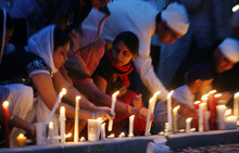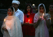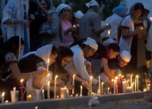 Members of the Sikh Temple of Utah, place their candles outside the temple during a candlelight vigil for the victims of the shooting at the Wisconsin Sikh Temple. The service was at the temple in Taylorsville, Utah Wednesday August 8, 2012.