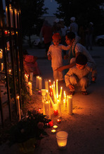 Manjot Kuar places a candle outside the Sikh Temple of Utah, during a candlelight vigil for the victims of the shooting at the Wisconsin Sikh Temple. The service was at the temple in Taylorsville, Utah Wednesday August 8, 2012.