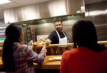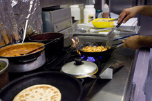 Once inside, you'll see a long wooden counter space overlooking the open kitchen, with more counter seating at the front of the restaurant facing State Street, as well as large wooden tables in the dining area. Outside, there's a small patio area. The restaurant is the third operation from the local Nisar family, whom you may recognize from Sugar House's Masala Indian Grill and State Street's near-iconic Curry In A Hurry.