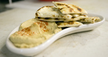 Plates, served with sides of mild veggie curry, offer a more substantial meal. These change regularly, and I sampled spinach, lentil and potato varieties over my visits all reminiscent of Curry In A Hurry's simple, home-cooked curries. Plates also include basmati rice, a warm fluffy pita and a salad dressed much like the wraps, with cooling yogurt-and-cucumber sauce and spicy chile sauce.