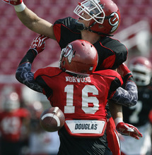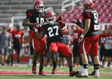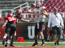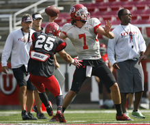Let's pretend Utah's football season started today and Jordan Wynn's shoulder was too sore for him to play.Who would take the field and quarterback the Utes?Your guy would be Jon Hays. Love him, hate him or be bored with him, the steady-playing senior maintained his slight edge over freshman Travis Wilson as the Utes concluded their fall camp with a scrimmage Saturday.Since it was mainly the backups who saw the live work, the Utes didn't keep stats, but coach Kyle Whittingham said Hays is ahead of Wilson, the 6-foot-6, 220-pound freshman out of San Clemente, Calif.The nimble-footed Wilson has a flashier game than Hays that Utah fans are probably eager to see, but Hays has the experience. Right now, that is enough to keep him ahead of the youngster."All last season he played for us, and that is the major component," Whittingham said of Hays' advantage.Hays started the final nine games of the 2011 season, going 6-3 as a starter and completing 120 of 214 passes for 1,459 yards and 12 touchdowns. However, he also threw eight interceptions and wasn't as efficient at moving Utah's offense in the passing game as Wynn was.The Utes had to rely on running back John White to carry the offense as a result, and became bogged down at times.But fall camp has been a different story for Hays, whose passes have been sharper, and his decision making has improved."He is much more confident in his game, you can see that," said offensive coordinator Brian Johnson.Wilson, meanwhile, said he'll continue to push for playing time. He admitted being disappointed in his production since he'd hoped to give Wynn a run for the starting role."I could have a chance to play this year, and I need to be ready for that and keep on studying and working hard," he said.Chances are he will play, since the Utes have no plans to redshirt him, Whittingham said. The coach also emphasized that the depth chart, as always, can change at any point."It's not absolute," he said.As for Saturday's effort, Whittingham wasn't thrilled with any of the quarterbacks' production in the two-minute drill.That area has been troublesome for the Utes during camp and needs to be improved, said Wynn, who rested his shoulder for the third straight day."We have to get better on offense," he said. "No one thinks we have arrived by any means."Wynn is expected back on the field on Monday along with several other Utes who have minor injuries.Whittingham reiterated that Wynn's sore shoulder isn't a major concern."According to the trainers, there is nothing to be concerned about," he said. "There is nothing wrong structurally, it's just a tired arm. He has been trying to throw fastballs all fall camp, trying to put more zip on the ball, and it just got worn out."lwodraska@sltrib.comTwitter: @lyawodraska