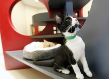 The new area also has 16 multi-level "condos" that house four cats each, along with four large rooms called "villas," each containing a "kittyosk" that accommodates the needs of 10 felines.