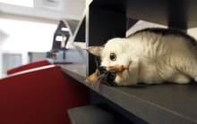 The new wing occupies space that formerly housed HSU's administrative offices before receiving an extreme makeover. The area houses about 62 single-cat "townhomes"  two-level cubicles that interconnect so that cats can curl up together or go back and forth.