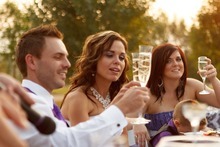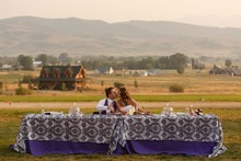 "It's more than just starting a marriage between a man and woman," says the bride during a reception at the former sheep farm. "We're starting a family together."