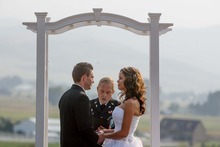 Charlie Chandler, a retired Army captain and her boss from the Veterans Services office at Weber State University, officiates, advising the couple that no ties are as tender or as sacred.