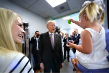 On Thursday, Smart pushed a stroller around the crime lab with her two-year-old daughter, Chloe, and baby son. Hatch greeted the kids, cooing "Who's this?" and "How are you?"
