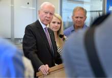 The group of about 25 staffers and administrators including Utah's U.S. Attorney John Huber slowly crept through the building, opened in early June, discussing bullet casings and fingerprint charts for more than an hour. Hatch, wearing a striped suit and black sneakers, shook hands with employees in white lab coats. When his voice faltered during one such introduction, the 83-year-old senator joked, "I'm afraid it's my age."