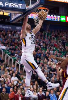 Utah Jazz forward Gordon Hayward (20) throws down a slam during the Utah Jazz versus Clevel