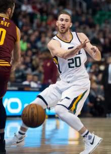 Utah Jazz forward Gordon Hayward (20) fires a pass during the Utah Jazz versus Cleveland Ca