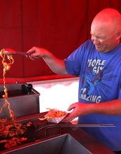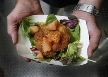 Rubadue's crab cakes • For gourmet fare at the fair, look for Rubadue's Saucey Skillet, a new food truck that launched about six weeks ago. It's owned and operated by long-time Utah chef and caterer, Carl Rubadue, who said sauces are his specialty. His signature dish is an Alaskan red king crab cake made with coconut milk and red Thai curry and topped with a lemon ginger sauce. The Saucey Skillet menu also includes homemade macaroni and cheese available with or without the fresh crab and pulled pork sliders.