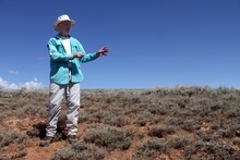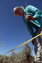 Scribbling data from a pasture he monitors for grass depletion, he stretched his tape measure across the ground and noted what grows precisely 73 feet from a cattle watering trough.
