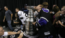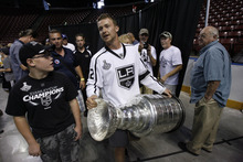 Trevor Lewis, who played hockey for Brighton High School, brings the Stanley Cup home for a day as a member of the NHL champion Los Angeles Kings. Thousands of fans lined up at the Maverik Center in West Valley City on Thursday, August 30, 2012, for a chance to pose for a picture with Lewis and the Cup.