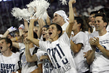 BYU distributed 40,000 white pom-poms for the game, and fans were urged to wear white for a white-out. Most obliged, but many had to don ponchos as it rained a half-hour before kickoff.