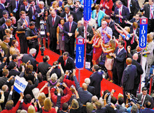 The three-day GOP rally focused on hyping Romney's regular-Joe attributes as he heads into the fall campaign against an incumbent with a much higher likeability rating. On stage Thursday, Romney choked up while talking about his parents, his wife, Ann, and his sons and grandchildren.