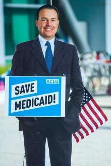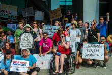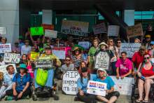 The sit-in was just the latest move by health care and disability-rights advocates in recent weeks to draw attention to what they consider problematic portions of the measure.