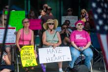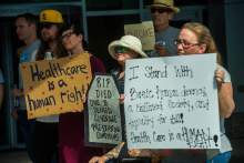 About 60 Utahns spent Thursday sitting, standing and milling in front of the Wallace F. Bennett Federal Building in downtown Salt Lake City to protest Senate Republicans' health care bill.