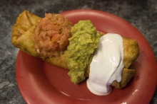 The only protein disappointment on the entire menu were the carnitas, because the braised pork tasted bland and mostly indistinguishable from the burrito's ($7 regular/$13 giant) overly plentiful beans and rice. Better was the nicely seasoned and salted chicken mixed with a right-sized amount of rice and beans in the deep-fried chimichanga ($8/$14).