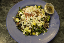 Unfortunately, when we arrived at our makeshift lunch destination some miles down the road with our take out order, I discovered that there was none of the "creamy salad dressing" that should have been the star of my steak salad with shredded lettuce, black beans and salsa. A salad without dressing is hardly a salad but the juices from the well-marinated steak saved it from being a complete disappointment.