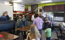 While Mountain West Burrito does have a dining area, take out is an attractive option to escape the loud and frenetic atmosphere. On a visit on a Monday afternoon, the line to order snaked through the dining tables nearly to the door. With every seat filled, our only option was to precariously perch ourselves between the soda fountain and the air-conditioning unit while we waited for our carry-out order to be ready.