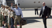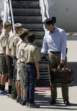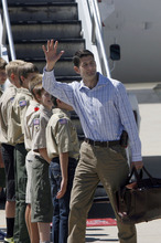 Ryan arrived in Utah Wednesday afternoon and was greeted by eight Boy Scouts from Troop 720 in Provo before climbing into a black SUV. He waved to supporters who had gathered outside the gate as he drove past.