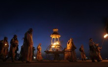 Unlike the previous night, the Sunday temple fire was quiet and reverential for the more than 60,000 seated on the ground.