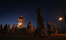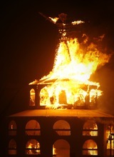 The annual Burning Man festival ended the next day with another ritual blaze: the destruction of a temporary temple, filled with photos and written memories of loved ones, pets, failed relationships, troubled pasts, old ideas and profound emotions hastily scrawled on pieces of paper, wood, cloth and cardboard. Some expressed anguish with words like "my life sucks." A woman hung up her wedding dress.