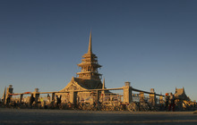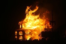 "It's a deliberate statement about life's transitory nature," explains Frogley, who posted his mother's name and 1996 death date in last year's temple, "and the human proclivity to hang onto things."