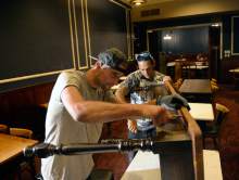 On Friday, carpenters had started dismantling the red oak tables and booths, revealing the original manufacturing labels that read "Salt Lake Cabinet Co. 1917."