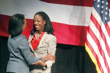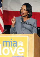 Lehi » Former Secretary of State Condoleezza Rice urged people to work hard to elect Mia Love to Congress, saying the Utahn is an amazing candidate who "believes in this country."