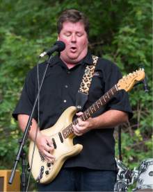 Tim "Lucky" Fulmer sings for the Rockamatics at the Millcreek Arts Festival at the