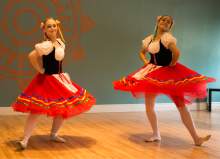 Abigayle Smith-Hubbard and Emily Martin perform a dance from Belarus, with the SLC Ballet at